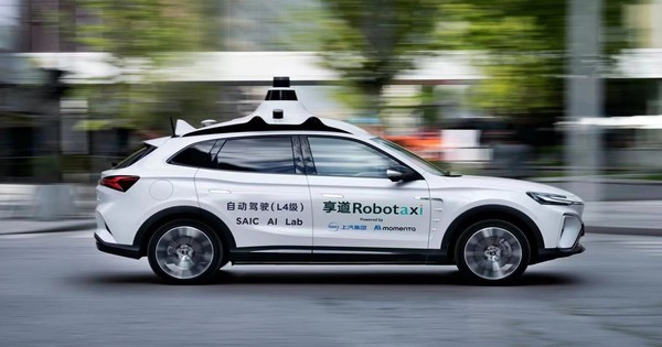 Một chiếc robotaxi đang di chuyển trên đường phố Trung Quốc.